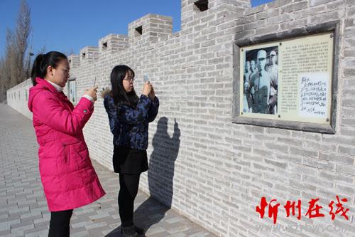 1月6日,山西農(nóng)業(yè)大學(xué)就讀的原平學(xué)子朱麗娟,利用在市新聞辦學(xué)習(xí)的機(jī)會(huì),與學(xué)姐常璐來到該市崞陽(yáng)鎮(zhèn)文化墻觀看續(xù)范亭將軍生平和毛澤東題詞的老照片。為了緬懷歷史,記住鄉(xiāng)愁,崞陽(yáng)鎮(zhèn)搜集了40余幅抗日戰(zhàn)爭(zhēng),解放戰(zhàn)爭(zhēng)時(shí)期的老照片,鑲嵌在文化墻上,供人們參觀。(曹申義 攝)