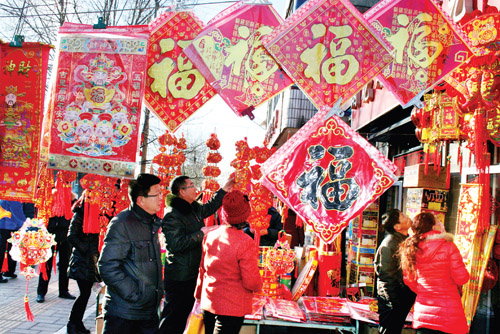 2月1日,原平市年貨市場(chǎng)上紅紅火火,一派喜慶景象。市民們高高興興選年貨,歡樂祥和喜迎新春佳節(jié)。(趙月仁 攝)