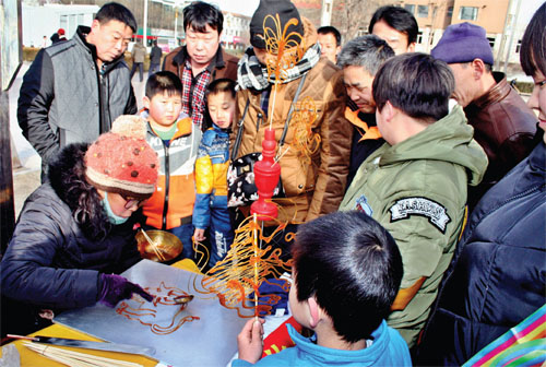 2 月23 日,中國(guó)非物質(zhì)文化遺產(chǎn)——糖畫在原平市場(chǎng)亮相,現(xiàn)場(chǎng)加工制作的糖畫栩栩如生,讓在場(chǎng)的群眾一飽眼福。(趙春曉 攝)
