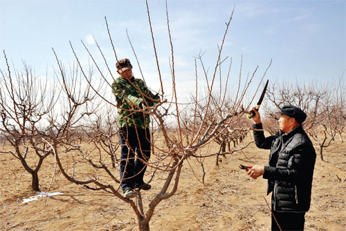 代縣胡峪鄉(xiāng)望臺(tái)村作為全縣優(yōu)質(zhì)干鮮果基地,家家戶戶靠栽植干鮮果樹發(fā)家致富,現(xiàn)已發(fā)展白水杏、仁用杏1900多畝,去年僅干鮮果一項(xiàng)就收入640萬元,全村人均純收入6000余元。嘗到甜頭的果農(nóng)們,正月十五一過就開始著手修剪果樹,期盼今年干鮮果獲得大豐收,將腰包進(jìn)一步鼓起來。圖為果農(nóng)在修剪果樹。(石俊文 劉睿 攝)