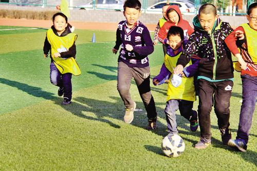 3月12日,原平農(nóng)校足球場內(nèi),小球迷正在進行對抗訓(xùn)練。從小培養(yǎng)兒童熱愛運動,熱愛足球,已成為時下一種教育理念。周末節(jié)假日兒童不再上各種培訓(xùn)班,踢足球,增體質(zhì),堅定自信心,已成為一種習(xí)慣:我運動,我健康,我是最棒的!(吉建平 攝)