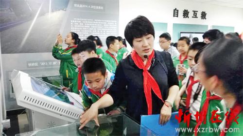 4 月10 日,團(tuán)市委利用雙休日組織市實(shí)驗第二小學(xué)的學(xué)生參觀了市道路交通安全宣傳教育基地,市公安局交警支隊專職宣傳民警帶領(lǐng)小學(xué)生參觀了各個展區(qū)、體驗區(qū),進(jìn)行了交通安全體驗,進(jìn)一步提升了小學(xué)生們的交通安全意識。圖為小學(xué)生分別在自救互救、紅綠燈和安全帶碰撞體驗區(qū),認(rèn)真聽取民警的講解和進(jìn)行親身體驗。(董健男 攝)