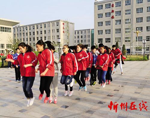為紀念“ 五四”運動97 周年, 豐富學生課余文化生活, 忻州三中于4 月15 日到18 日舉行了集體跳繩比賽活動。22個參賽隊、400多名運動員參加了比賽。圖為比賽現場。(焦秀峰 攝)