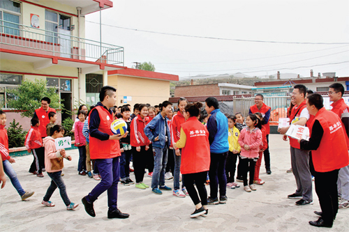 近日,太原市善林金融30 余名志愿者來到靜樂縣西會(huì)中心小學(xué),開展關(guān)愛留守兒童志愿服務(wù)活動(dòng),為孩子們送去了排球、羽毛球、跳繩、乒乓球臺(tái)等體育用品和設(shè)備,并與孩子們分享了中國女排頑強(qiáng)拼搏的故事,鼓勵(lì)孩子們自強(qiáng)不息、快樂成長(zhǎng)。(劉盛甫 攝)