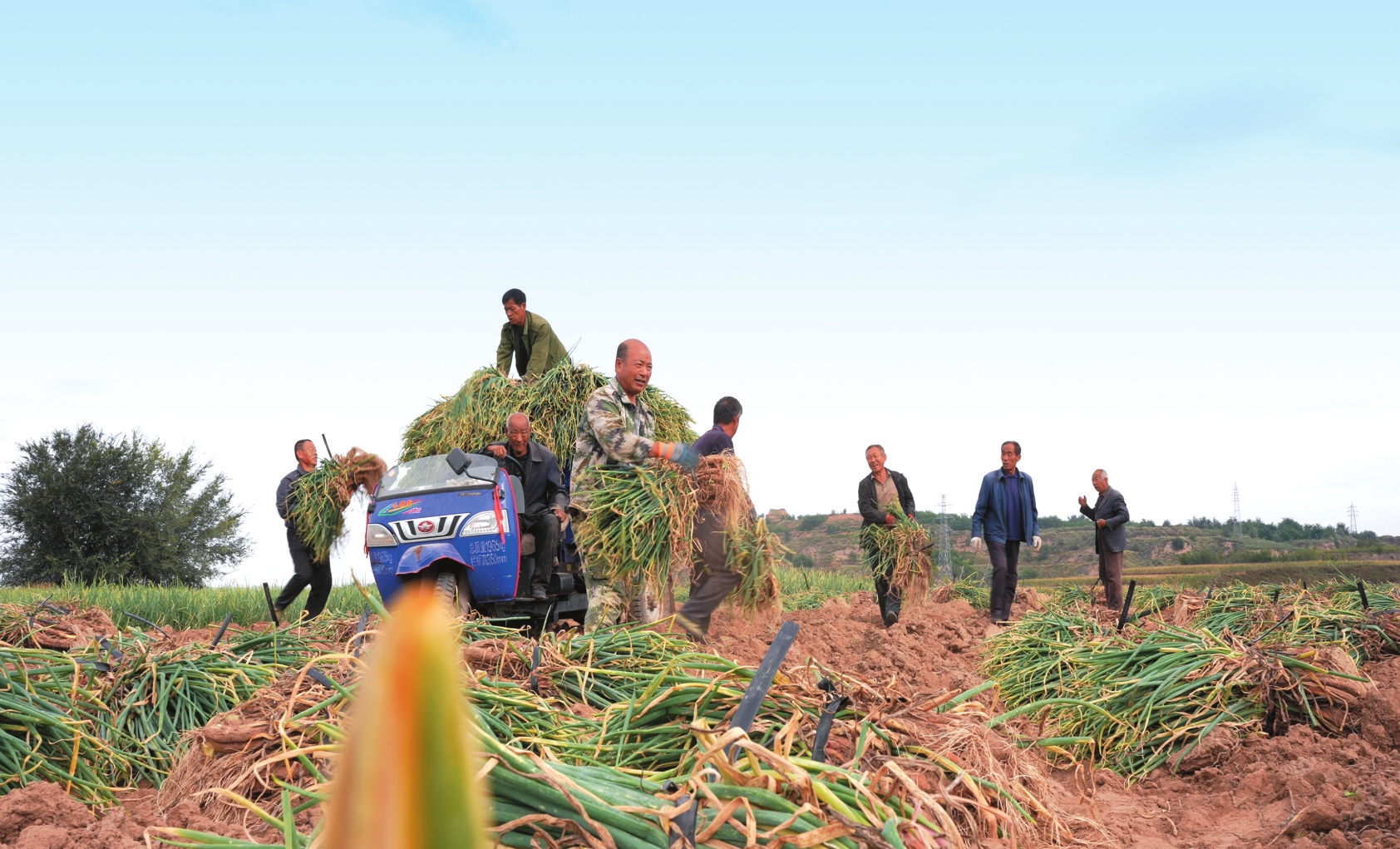 河曲縣巡鎮(zhèn)鎮(zhèn)赤泥也村紅蔥喜獲豐收,萬(wàn)斤訂單裝車出貨。何 帥攝