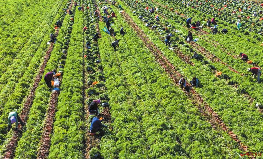 晚秋時(shí)節(jié),代縣新高鄉(xiāng)韓街村胡蘿卜種植基地迎來了豐收季。品質(zhì)優(yōu)良的胡蘿卜經(jīng)過簡單處理,將被運(yùn)往全國各地市場(chǎng)。(王晉東攝)