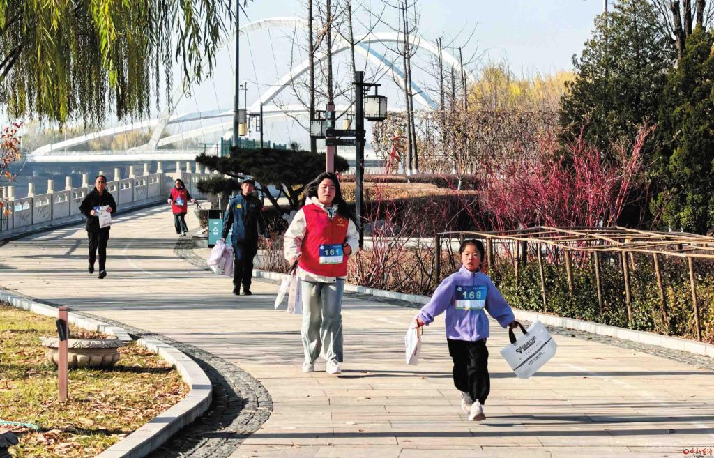 11月15日,“關愛河湖 保護母親河”河動快閃跑·全省聯(lián)動點線護水行忻州站活動在云中河溫泉旅游度假區(qū)舉行。近兩百名參與者手持垃圾袋、夾子,邊慢跑邊撿拾垃圾,將健身與護河融為一體。 (記者 張存良攝)