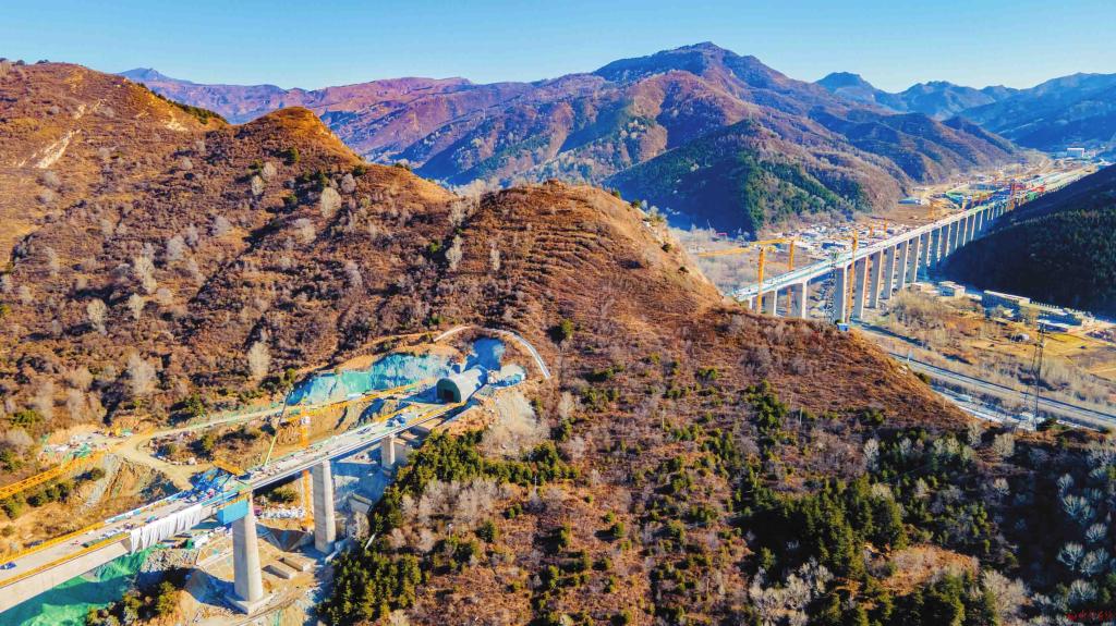 11月14日,雄忻高鐵五臺(tái)山段工程建設(shè)正在全速推進(jìn)。航拍鏡頭下,高鐵線(xiàn)路蜿蜒穿行太行層巒,與深秋遺韻、初冬新寒相映,盡顯基建與生態(tài)協(xié)調(diào)的壯美圖景。(記者范琛攝)