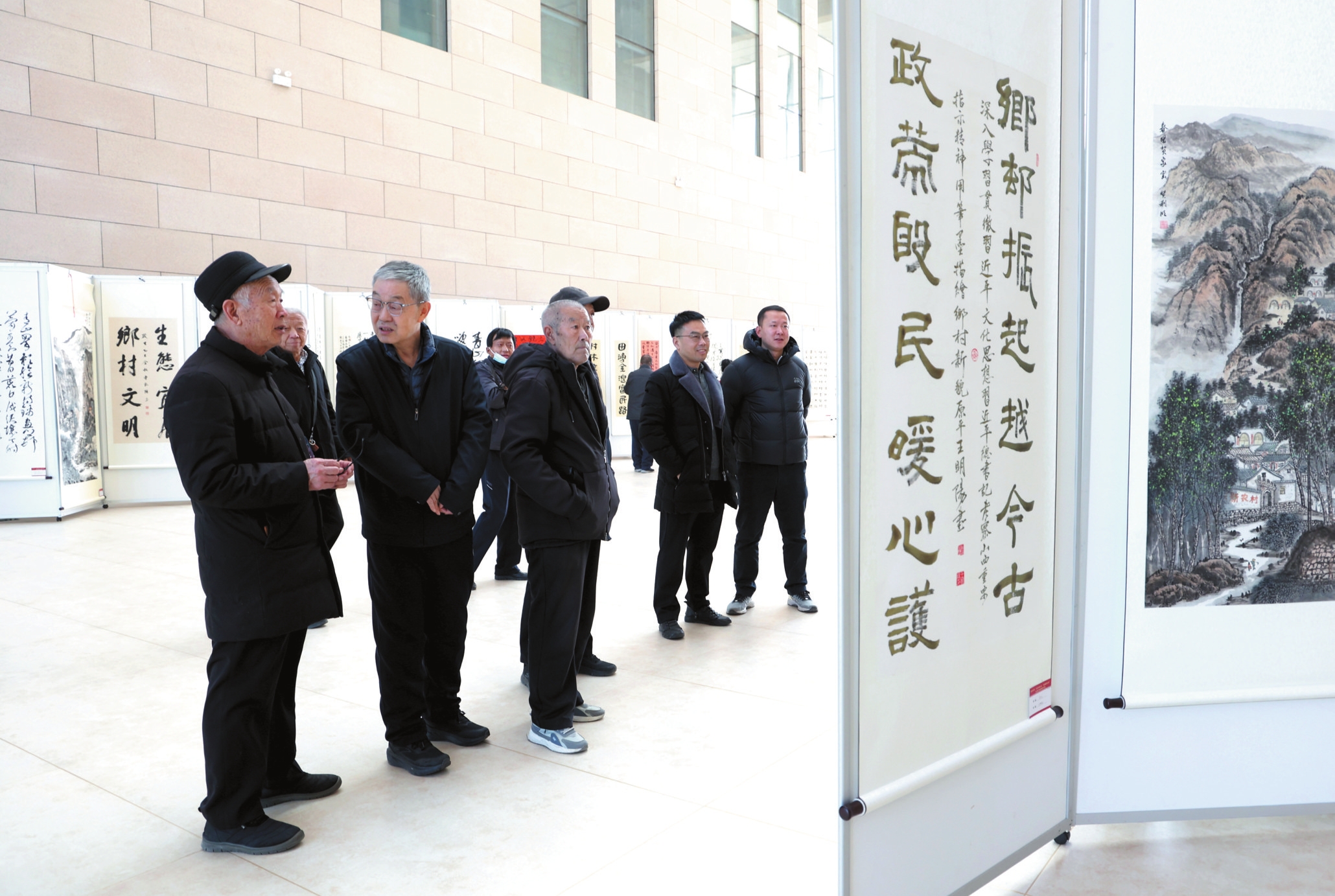近日,市圖書館舉辦“鄉(xiāng)村振興·詩畫忻州”主題書畫攝影展。圖為展覽現(xiàn)場。(范琛攝)