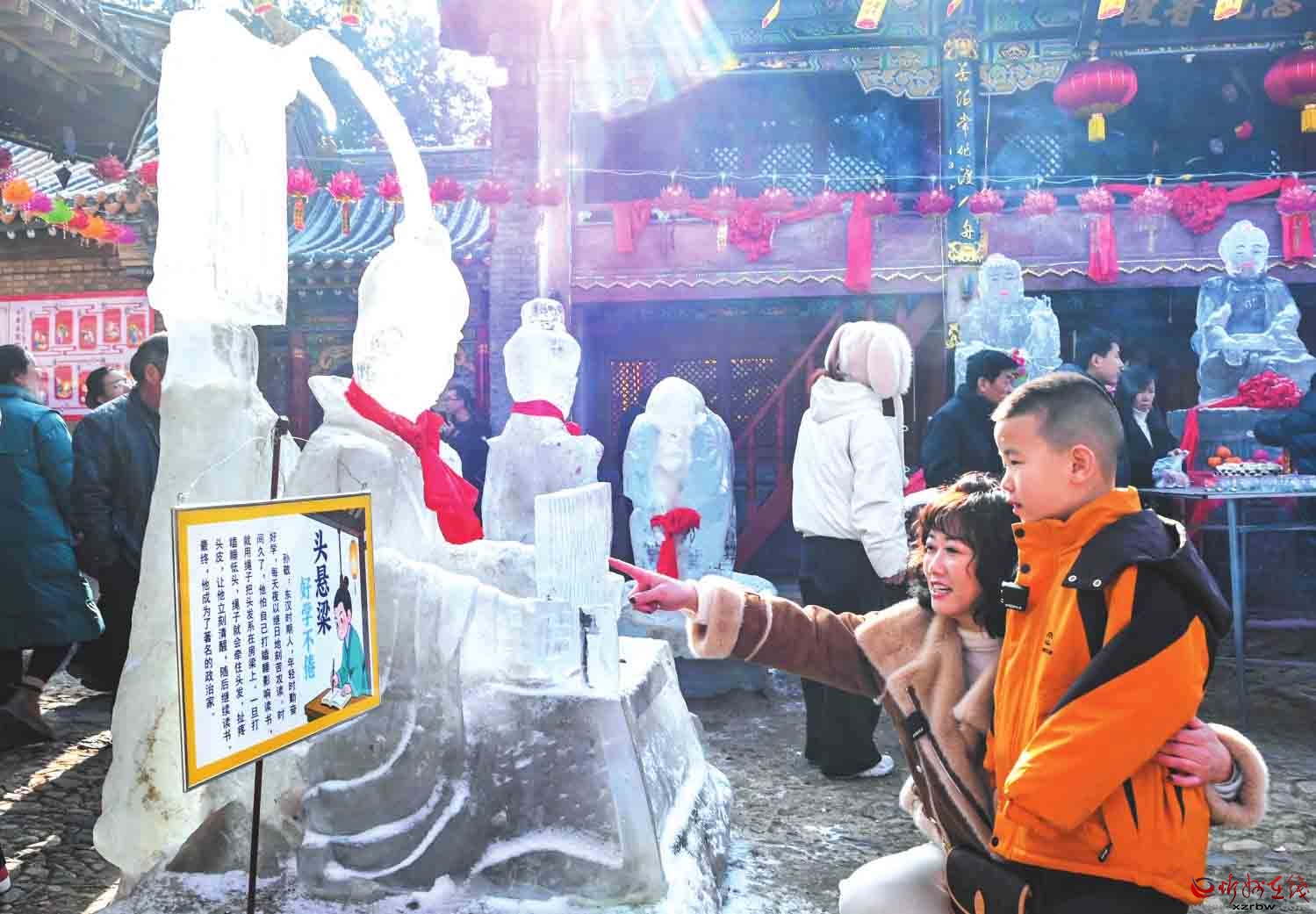 1月26日,代縣峨口鎮(zhèn)佛光莊村舉辦第45屆冰雪節(jié),冰雕作品既有象征馬年到來的駿馬奔騰,也有鐵杵磨針、曹沖稱象等傳統(tǒng)故事題材,為冰雪節(jié)增添了濃厚的文化氣息。(王晉東攝