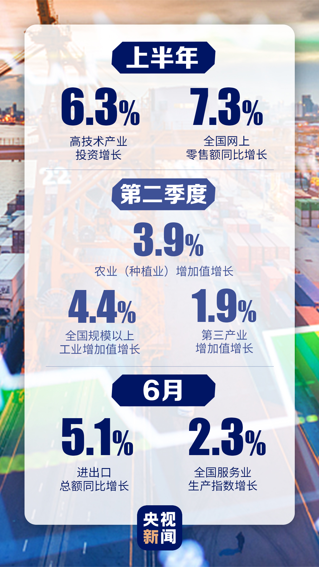 上半年我國經(jīng)濟(jì)先降后升,二季度經(jīng)濟(jì)增長由負(fù)轉(zhuǎn)正,主要指標(biāo)恢復(fù)性增長,經(jīng)濟(jì)運(yùn)行穩(wěn)步復(fù)蘇,基本民生保障有力,市場預(yù)期總體向好,社會發(fā)展大局穩(wěn)定。