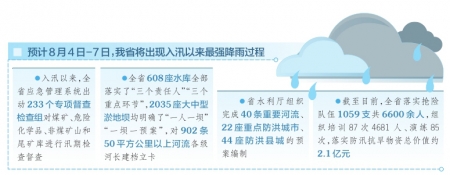 據(jù)氣象部門報告,預計8月4日-7日,我省將出現(xiàn)入汛以來最強降雨過程。為做好此次強降雨防范應對,8月3日下午,省防汛抗旱指揮部組織了緊急會商,進一步強弱項、補短板,全力做好各項工作,確保安全度汛。