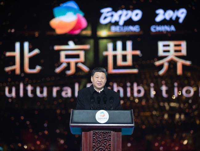2019年4月28日,國(guó)家主席習(xí)近平在北京延慶出席2019年中國(guó)北京世界園藝博覽會(huì)開(kāi)幕式,并發(fā)表題為《共謀綠色生活,共建美麗家園》的重要講話。新華社記者王曄攝