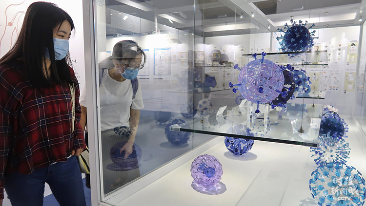 △“命運(yùn)與共,攜手抗疫——科技與健康同行”主題展覽7月在上??萍拣^開(kāi)幕,這是展覽現(xiàn)場(chǎng)。