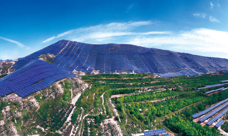 放眼望去,光伏板如同鎧甲一般覆蓋山體。資料圖