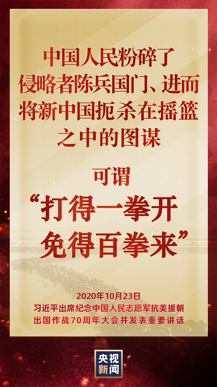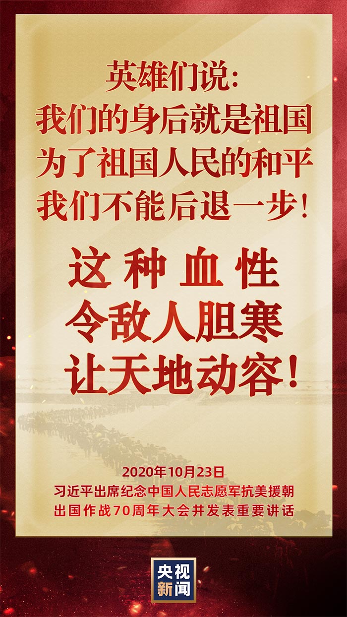 紀(jì)念中國人民志愿軍抗美援朝出國作戰(zhàn)70周年大會今天上午在北京人民大會堂隆重舉行,習(xí)近平發(fā)表重要講話。 在困難和風(fēng)險面前,中國人民是什么樣的?這些回答擲地有聲,讓每個中國人熱血沸騰!