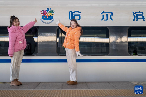 1月4日,首列“哈爾濱冰雪大世界”主題高鐵列車G1276在哈爾濱西站正式開行,駛向終點(diǎn)站武漢。據(jù)悉,“哈爾濱冰雪大世界”主題高鐵列車內(nèi)外遍布冰雪大世界相關(guān)元素,成為流動的名片,助力冰雪經(jīng)濟(jì)融合升溫。