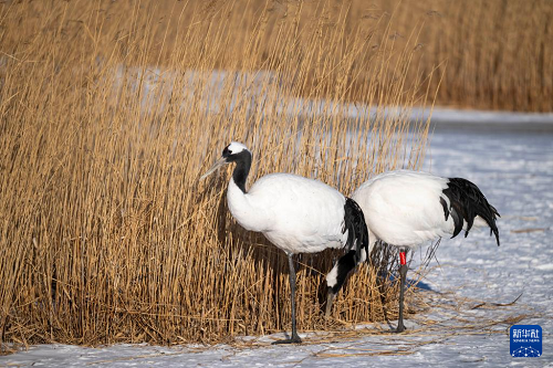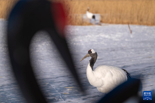 這是1月21日拍攝的黑龍江扎龍國(guó)家級(jí)自然保護(hù)區(qū)內(nèi)的丹頂鶴。(新華社記者 張濤 攝)