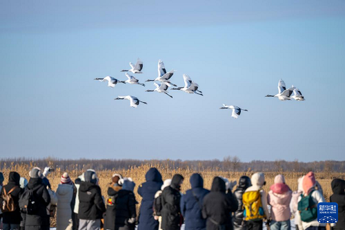 1月21日,游客在黑龍江扎龍國(guó)家級(jí)自然保護(hù)區(qū)內(nèi)觀看丹頂鶴。(新華社記者 張濤 攝)
