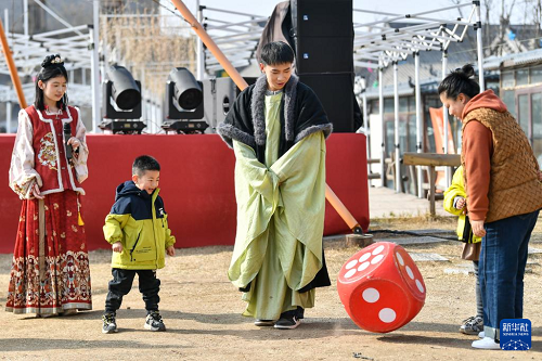 2月25日,游客在山西太原古縣城參加趣味活動(dòng)。(新華社記者 曹陽(yáng) 攝)