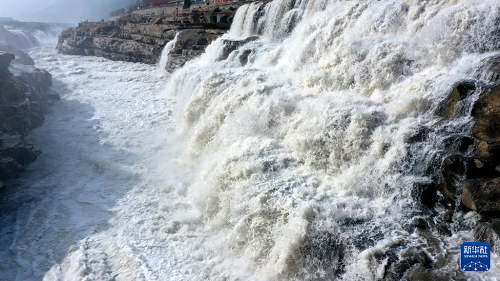 3月5日拍攝的黃河壺口瀑布(無人機照片)。(新華社發(fā) 呂桂明 攝)