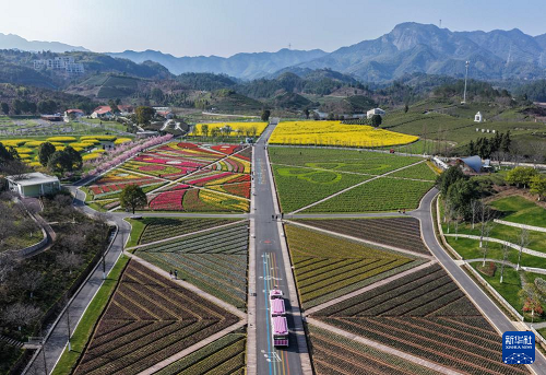 空中俯瞰花田美地景區(qū)(3月10日攝,無人機照片)。(新華社記者 徐昱 攝)