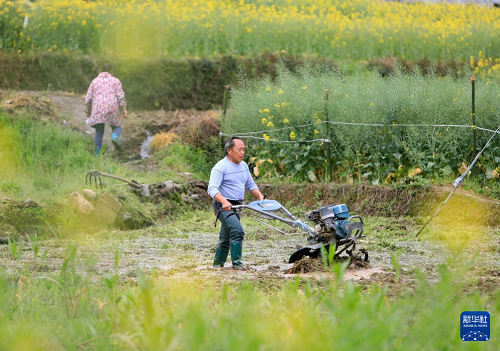 3月24日,在重慶市秀山土家族苗族自治縣溶溪鎮(zhèn)柳水村,村民操作小型機(jī)械在田間犁地。(新華社發(fā) 胡程 攝)