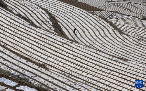 連日來,在黃土高原上的甘肅省天水市武山縣,當(dāng)?shù)剞r(nóng)民抓住近期降雨較多、土壤墑情好的有利時(shí)機(jī),及時(shí)整地、施肥、覆膜保墑,覆膜后的山地梯田成為黃土高原上一道亮麗的春日風(fēng)景。