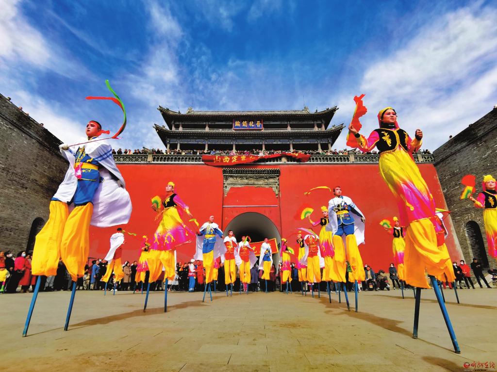 定襄社火和各類傳統(tǒng)民俗活動(dòng)歷史悠久,各類極具地方特色的民俗文化活動(dòng)觀賞性很強(qiáng),二兔藝術(shù)團(tuán)盡情舞動(dòng),表情歡悅;老干部藝術(shù)團(tuán)鶴發(fā)童顏,精神抖擻;夢(mèng)之藍(lán)旗袍隊(duì)舉止高雅,體態(tài)大方;紅燈籠高蹺隊(duì)腳踏雙木,輕松自如……有趣的互動(dòng),讓大家樂(lè)在其中。喜慶的樂(lè)曲,歡快的表演,充分展現(xiàn)了人民群眾的新生活、新風(fēng)尚、新面貌,迎來(lái)觀眾一片喝彩聲,讓游客感受到了定襄的民俗文化魅力。(張存良 攝)