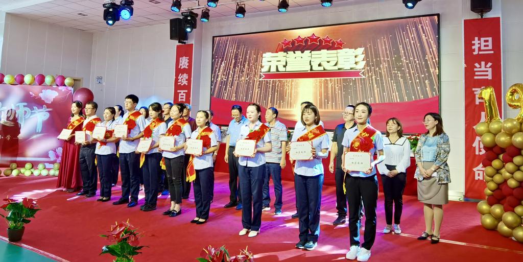 活動(dòng)現(xiàn)場(chǎng),學(xué)校對(duì)14名優(yōu)秀教師進(jìn)行了表彰,其中1名為優(yōu)秀教育工作者,8名為模范教師,5名為模范班主任。通過表彰先進(jìn),鼓勵(lì)老師們?cè)俳釉賲?,繼續(xù)發(fā)揮愛崗敬業(yè)、立德樹人,三尺講臺(tái)育英才的精神,為下一代成長(zhǎng)教育發(fā)揮更大的作用。