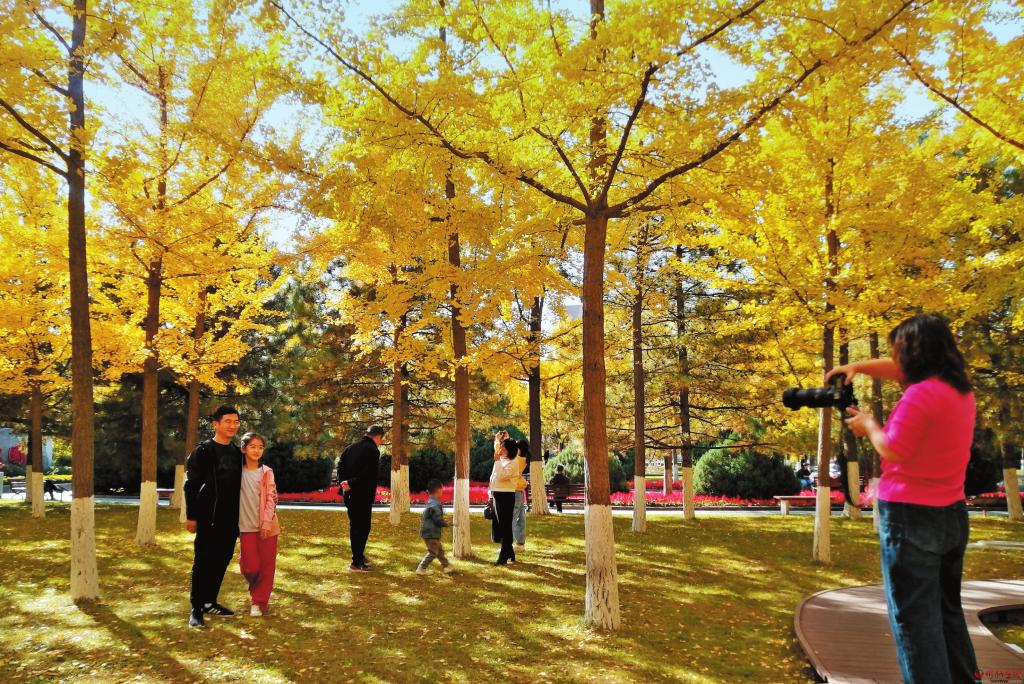 葉落知秋,霜落知寒,但屬于銀杏的時(shí)節(jié)才剛剛開始。忻州城區(qū)人民公園絢爛金黃的銀杏把秋日氣息渲染到了極致,使原本蕭瑟的秋季充滿融融暖意。滿樹的金黃,一片片、一簇簇,層疊排開、錯(cuò)落有致,一陣微風(fēng)吹過,扇形葉子飄灑而下,如漫天飛舞的金色蝴蝶,在空中翻轉(zhuǎn),落成一地金黃,吸引無(wú)數(shù)游人打卡拍照、流連忘返。(本報(bào)記者 李濤 攝)