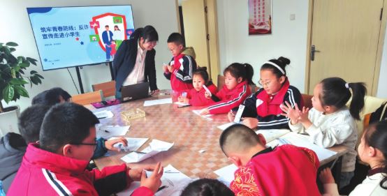 活動還推出“反詐知識家庭包”,引導學生將反詐技能帶回家,教會長輩防范詐騙。此次活動既守護青少年安全,也彰顯了企業(yè)社會責任。圖為反詐中心工作人員與學生做反詐小游戲。付文金攝