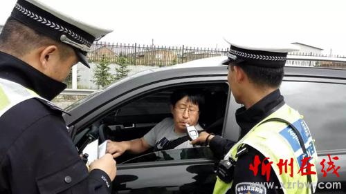 九大隊(duì)民警正在對(duì)過往司機(jī)進(jìn)行酒精測試