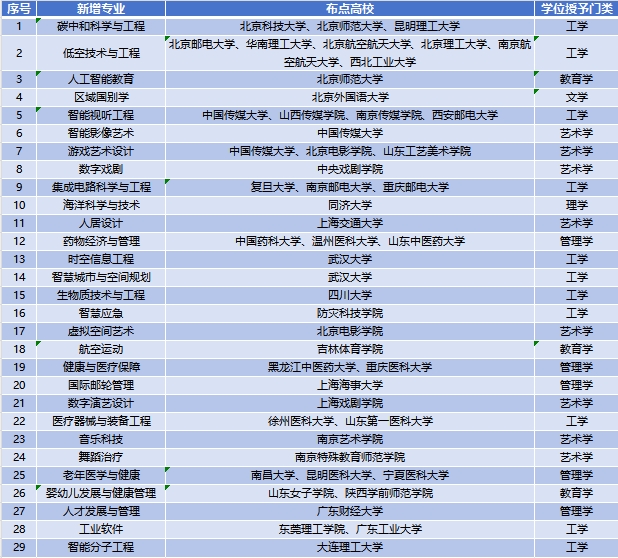新增29種專(zhuān)業(yè)