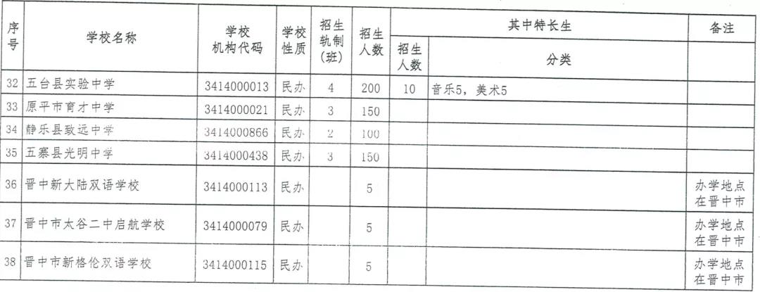 附件:1.忻州市2020年普通高中學校分校招生計劃