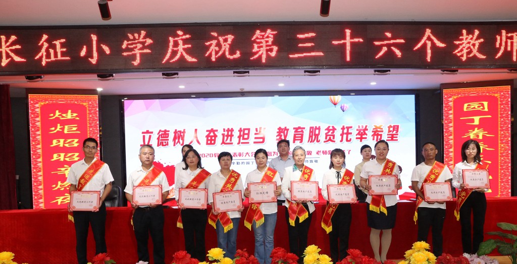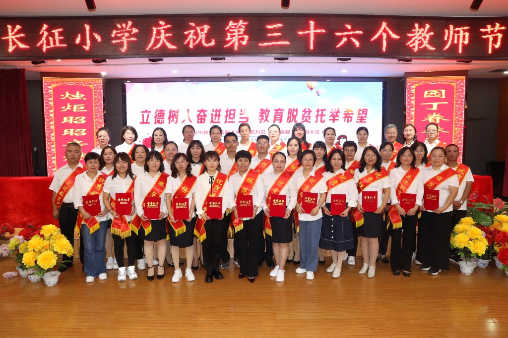 支部書記常文華主持大會并宣讀了長征小學模范教師名單,副校長周玉靜宣讀了長征小學優(yōu)秀班主任名單,副校長劉秀峰宣讀了長征小學先進教育工作者名單和優(yōu)秀共產黨員名單,同時舉行了隆重的頒獎儀式。