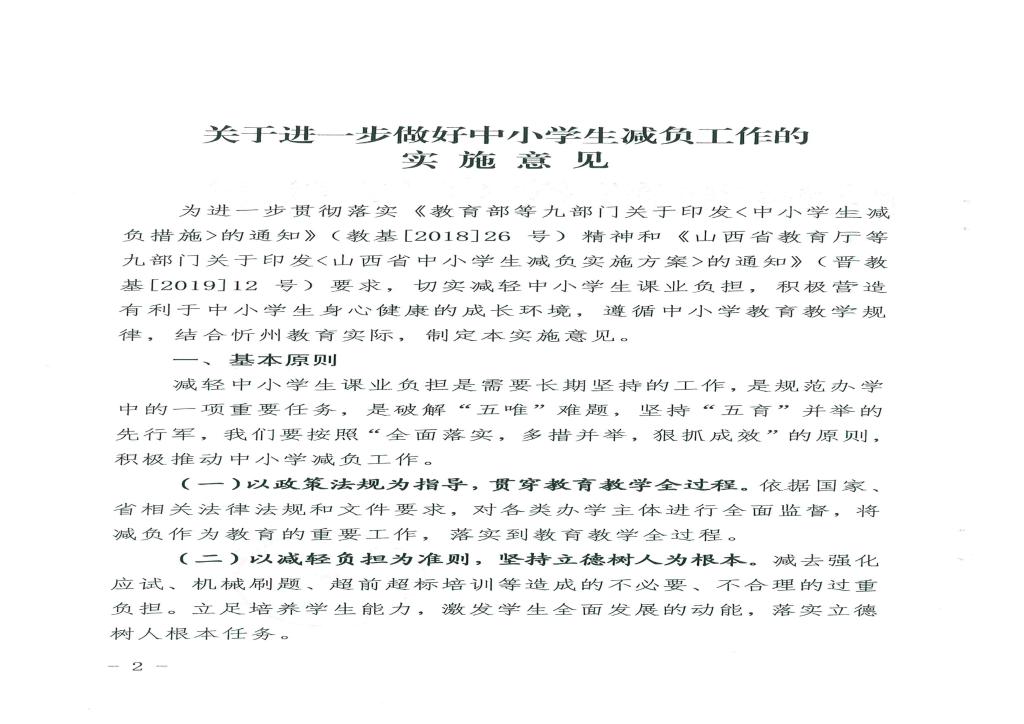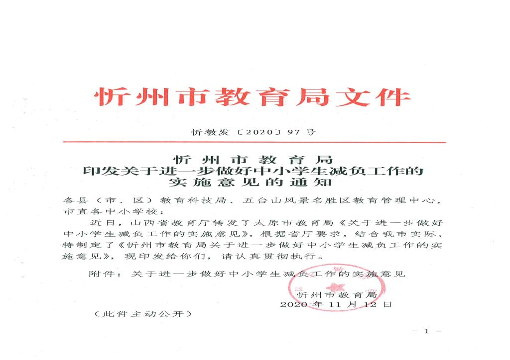 忻州市教育局印發(fā)關(guān)于進(jìn)一步做好中小學(xué)生減負(fù)工作的實(shí)施意見的通知