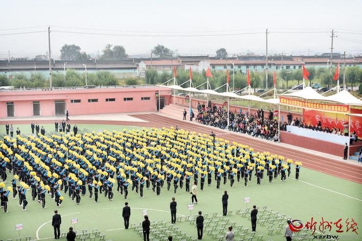 9月27日上午10點整,寬闊的綠茵操場上,彩旗飄揚(yáng),鼓樂喧天。由700多名小學(xué)生組成的整齊的方陣,在環(huán)形跑道上健步前行。鮮花舞動,口號震天??磁_上人頭攢動,掌聲如潮……這是繁峙縣教育科技局在筆峰小學(xué)組織召開的全縣農(nóng)村寄宿制小學(xué)課程改革交流研討暨培訓(xùn)活動七大程序中的第三項內(nèi)容——文體藝術(shù)成果大型展示的入場式。
