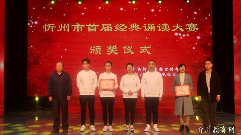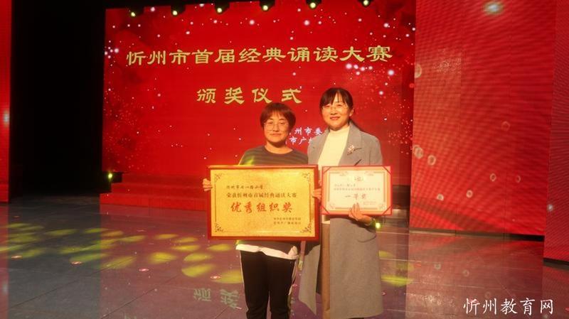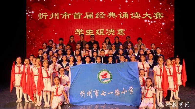 “共讀中華經典,聆聽古詩書韻”。由中共忻州市委宣傳部主辦,忻州市廣播電視臺承辦 “忻州市首屆經典誦讀大賽”經過初賽海選和緊張激烈的復賽和決賽,于11月1日落下帷幕。本次比賽學生組共有四十一個參賽節(jié)目,經過角逐,有十個節(jié)目進入了決賽。決賽采取評委當場亮分,現(xiàn)場點評的方式,最終評出一等獎一名,二等獎二名,三等獎三名,最佳風采獎四名。七一路小學以98.51分的成績奪冠,榮獲學生組一等獎。同時學校也榮獲優(yōu)秀組織獎。