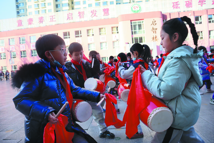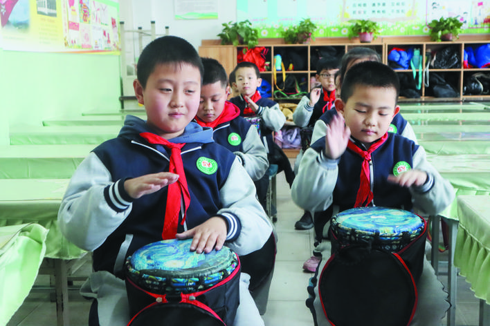作為一種歷史悠久的傳統(tǒng)民族藝術(shù),腰鼓節(jié)奏歡快,鼓聲清脆悅耳。由孩子們展示這種藝術(shù)形式,更能張揚(yáng)出獨(dú)特的藝術(shù)性,同時練招式、講秩序,長知識、練思辨。由來自全校的100名學(xué)生組成的腰鼓隊是市實(shí)驗(yàn)小學(xué)精心打造的一支規(guī)模相對較大的隊伍。董海燕老師是腰鼓隊的三位帶隊老師之一,還兼任198班的班主任,緊張的課堂教學(xué)之余,還要積極參與到教孩子們打腰鼓的第二課堂活動中,董老師說,下一步,學(xué)校準(zhǔn)備打造千人腰鼓隊,讓更多的孩子了解和掌握打腰鼓的技巧、技法,更好地弘揚(yáng)中華民族的傳統(tǒng)藝術(shù)。