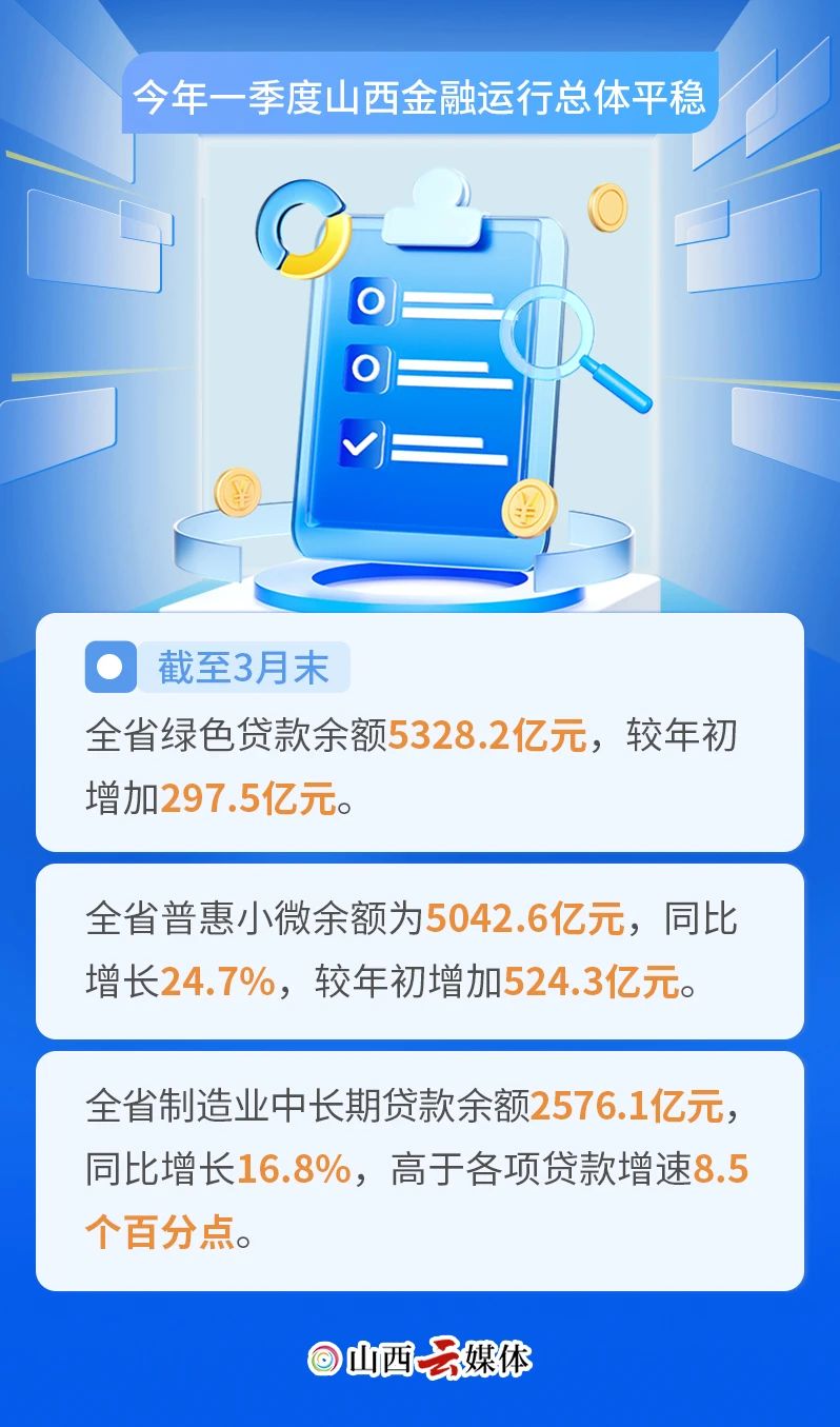 4月28日下午,人民銀行山西省分行召開(kāi)2025年一季度山西省金融統(tǒng)計(jì)數(shù)據(jù)新聞發(fā)布會(huì),會(huì)議介紹,2025年一季度,我省社會(huì)融資規(guī)模、金融機(jī)構(gòu)貸款、存款均保持平穩(wěn)增長(zhǎng),信貸結(jié)構(gòu)繼續(xù)優(yōu)化,支持經(jīng)濟(jì)恢復(fù)和高質(zhì)量轉(zhuǎn)型發(fā)展的力度進(jìn)一步加大。5張海報(bào),讀懂“新鮮”數(shù)據(jù)。