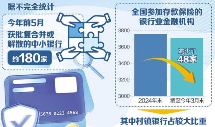 中小銀行是我國金融體系的重要組成部分,也是推動區(qū)域經(jīng)濟(jì)發(fā)展和服務(wù)實體經(jīng)濟(jì)的生力軍。今年以來,我國中小銀行改革重組步伐加快,多地的村鎮(zhèn)銀行、農(nóng)商銀行等金融機(jī)構(gòu)被吸收合并重組,將在金融機(jī)構(gòu)名單上加速消失。據(jù)不完全統(tǒng)計,今年前5月,約180家中小銀行獲批復(fù)合并或解散。