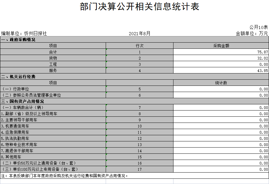 10、部門決算公開相關(guān)信息統(tǒng)計表