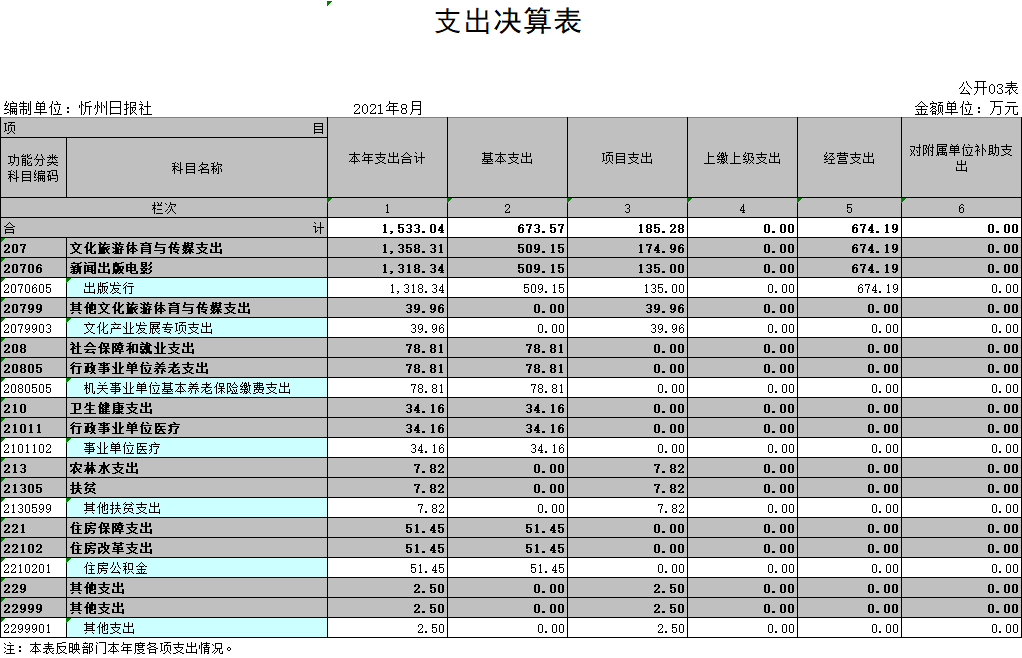 (三)部門決算單位構(gòu)成:忻州日報社是一級預算單位,無下屬單位。部門預算只有一個單位,即忻州日報社。
