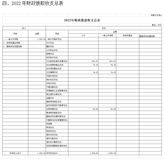一、2022年預(yù)算收支總表