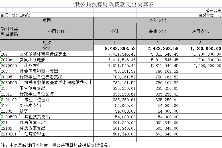 說明:忻州日報社沒有使用政府性基金預(yù)算安排的支出,故本表無數(shù)據(jù)。