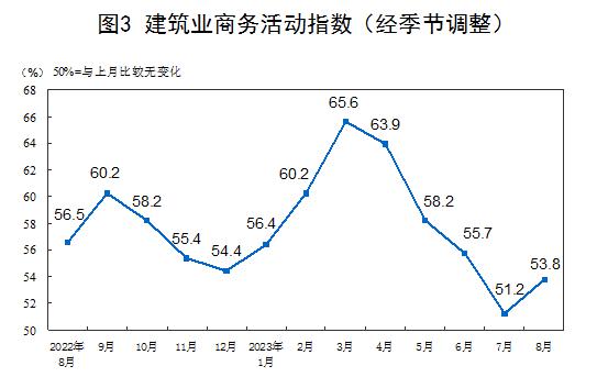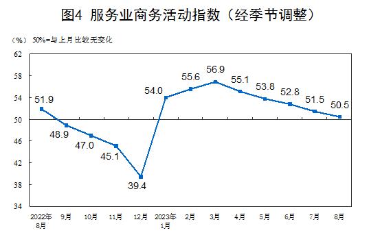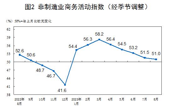 此外,在中國非制造業(yè)采購經(jīng)理指數(shù)運行情況方面,8月份,非制造業(yè)商務(wù)活動指數(shù)為51.0%,比上月下降0.5個百分點,仍高于臨界點,非制造業(yè)持續(xù)擴張。