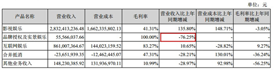 品牌授權(quán)與實景娛樂板塊: