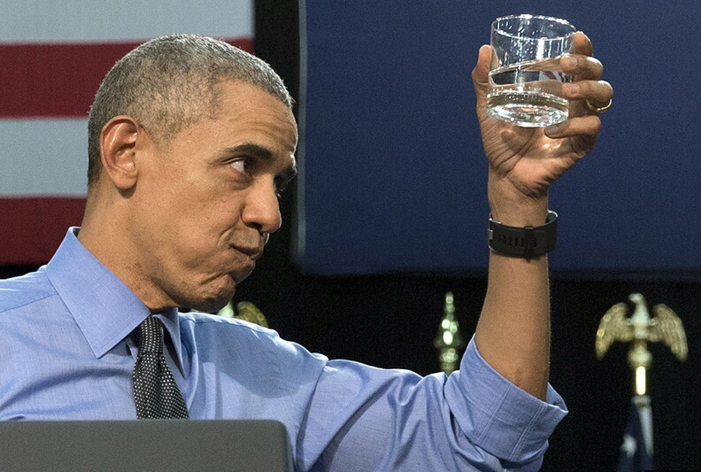 德新社報(bào)道,在聽(tīng)取水污染治理情況匯報(bào)時(shí),奧巴馬也喝了當(dāng)?shù)剡^(guò)濾后的飲用水。