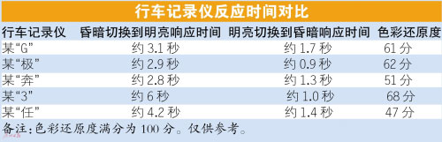 此次測(cè)試,車(chē)天下君準(zhǔn)備一個(gè)“黑盒子”,里面放置一個(gè)屏幕常亮的智能手機(jī)。在“黑盒子”外面,放置另外一個(gè)屏幕常亮的智能手機(jī)。切換時(shí)間控制在0.3秒之內(nèi),分為“明到暗”和“暗到明”兩個(gè)環(huán)節(jié),記錄行車(chē)記錄儀場(chǎng)景切換時(shí)的響應(yīng)時(shí)間。由測(cè)試結(jié)果一覽表可以看到,參與測(cè)試5個(gè)型號(hào)的行車(chē)記錄儀的響應(yīng)時(shí)間都不盡相同:短則1秒,長(zhǎng)則6秒。車(chē)天下君歸納如下,質(zhì)量合格的行車(chē)記錄儀從昏暗切換到明亮環(huán)境的響應(yīng)時(shí)間應(yīng)在3~4秒之間,從明亮切換到昏暗環(huán)境當(dāng)中的響應(yīng)時(shí)間應(yīng)該在1~2秒之內(nèi)。